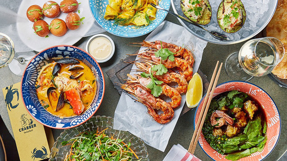 На первом этаже «Башни на Набережной» в «Москве-Сити» открылся новый проект Аркадия Новикова. Концепция ресторана Crabber закручена вокруг крабов – для тех, кто сразу не понял из названия, в ресторане установлен аквариум с крабами. Всего заявлено шесть видов крабов (камчатский, волосатик, колючий, стригун, мурманский, вьетнамский), но сейчас в меню только три. Тему морепродуктов продолжают сахалинские устрицы, магаданские и чилимские креветки, морские ежи и гребешки. Кухню в ресторане возглавляет многолетний шеф холдинга Novikov Group Камель Бенмамар (Vаниль, Bolshoi, «Рыбы нет»). Заказывать рекомендуем: краб ролл со свежим огурцом и картофелем фри; авокадо гриль с начинкой из краба; пельмени с крабом и дорадо; суп из крабового биска, мидий, кальмаров, креветок, трески и крабов; бонбоны и чуррос с соусом на выбор.