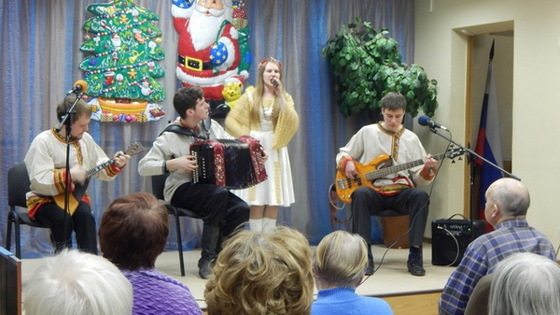 В библиотеке №76 имени М. Ю. Лермонтова в Сокольниках в праздничные дни выступил с концертом ансамбль русских народных инструментов «Калита». Помимо великолепного исполнения, музыканты очень хорошо общаются со зрителем, в результате чего каждый, подпевая знакомые песни, ощущает себя сопричастным к творящемуся на сцене. В составе ансамбля выступают гармонист и художественный руководитель Иван Фадин, певица Ангелина Василевская, балалаешник Григорий Цветков и гитарист Павел Гаврилов. Помимо русских песен, они исполняют украинский репертуар, колядки, частушки. Неоднократно в этот день вспоминали виртуозного балалаешника Дмитрия Калинина, прославленного солиста Театра Надежды Бабкиной, который трагически погиб перед самым Новым годом.