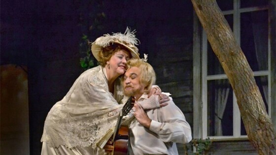 А этот дом с садом дышит какой-то своей жизнью, несущей на себе отголосок крепостных времен — ещё когда старика Фирса (Геннадий Кочкожаров) хотели женить, а вишню, по его словам, “сушили, мочили, мариновали, варенье варили... Способ тогда знали”. Тогдашний способ добычи средств канул в Лету, нового способа собравшиеся выдумать никак не могут — осталась лишь привычка сорить деньгами, и ей более всех подвержена Любовь Андреевна, которая и сама за собой признаёт это качество, и не меньше других сокрушается полной неспособности противостоять собственной слабости. У неё этих слабостей вообще немало — так, с большим удовольствием она носит праздничные наряды, а покидая свой дом навсегда — облачается в норковую накидку с кисточками. Может быть, именно поэтому ей и свойственно прощать недостатки других, закрывая глаза на происходящее.
