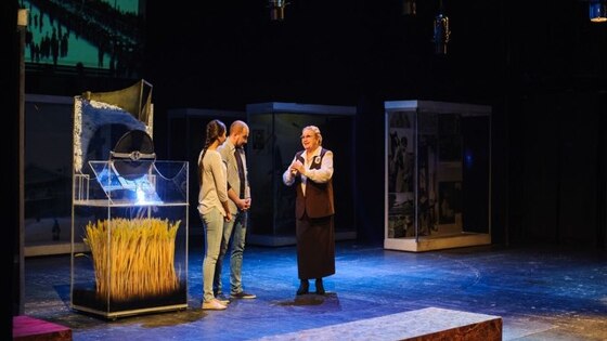 К 75-летию со дня Сталинградской битвы в Оренбургском государственном областном драматическом театре им. М. Горького показали спектакль «Позови меня в прошлое». Военная летопись стала постановкой народного артиста РФ Рифката Исрафилова по пьесе Павла Рыкова. Этот спектакль показывает смену мировоззрения под влиянием определенных факторов. Достойно ли нынешнее поколение подвига и жертвы, принесенной дедами? Об этом предлагает поразмышлять спектакль «Позови меня в прошлое». Акцент пьесы сосредоточен на характерах главных героев, они случайно попадают в музей во время акции «Ночь музеев». Молодые люди оказывают в Чкалове времен Великой Отечественной Войны. Спектакль фактически разрывается на две части. В первой режиссер показывает нам свое восприятие современной молодежи, которая с таким редкостным отвращением проявляет свое отношение к исторической памяти народа. Но дальше автор постепенно начинает рассказывать зрителю о войне, той страшной, жестокой и беспощадной. Каждая сцена структурирована как маленькая история судеб тех людей, которые были связаны с воюющем городом. На сцене появляется поэт Муса Джалиль, композитор Соловьев-Седой, поэт-песенник Алексей Фатьянов, фронтовой журналист Михаил Клипиницер, советский военачальник Александр Родимцев и, конечно же, участник антифашистского подполья Александр Шморель. В какой-то момент над сценой загорается экран. С его белого полотна в зал смотрят глаза узников фашистских лагерей смерти. Евреи, русские, поляки, украинцы, мужчины, женщины, дети – ни национальность, ни возраст, ни пол, только глаза. Глаза наполненные горем и ужасом пережитого. А на сцене в этот момент допрашивают немецкого офицера, охранявшего эту «фабрику смерти». Это путешествие наших современников в военное прошлое оставляет в финале нас наедине с самими собой. Здесь зрители, как и герои летописи, встречаются с войной лицом к лицу, возвращаясь в «реальность» уже совсем другими людьми.