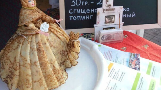 Целая выставка масленичных кукол открылась в центре Ярославля — и каких только там нет. Целый парад кукол. Даже кукла-блин есть. Но эта маленькая Барби всем утёрла нос. Барби нарядили в платье из блинов. Да, весь наряд — блинный. Весь! И чтобы не казалось, что блинов маловато, сумочка у куклы тоже блинная. Стоит масленичная Барби на прилавке одного из ресторанов на фестивале стрит-фуда на Первомайском бульваре — самом первом домике-шале со стороны Красной площади. Фестиваль в этом году стал одной из самых интересных затей праздника. Продают не только блины, но и разную выпечку, и бургеры. — Уличная еда — это на сто процентов авторская кухня, причем блюда готовятся при вас, — говорит руководитель оргкомитета фестиваля Kaliningrad Street Food Александр Исаев, который помогает организовать ярославский фестиваль. — Вы видите процесс от самого начала до конца и, более того, можете на него повлиять. Если какой-то продукт вам не нравится или вы хотите что-то добавить, можете обратиться к шефу, который придумал, создал и готовит для вас это блюдо. Мы уже посмотрели цены на выпечку в домиках-шале. А в этот выходной всех зовут на бургерные бои.