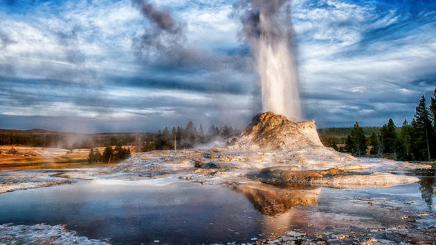 Свое название гейзер получил благодаря причудливым формам, в которых исследователи высмотрели башенки и зубчатые края, напоминающие очертания замка. Гейзер извергается каждые 10-12 часов, выбрасывая в воздух в течение 20 минут столб кипятка высотой 27 метров.