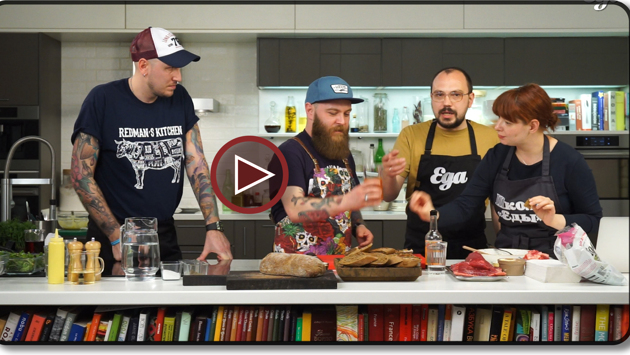 Рома Редман — шеф петербургской митерии Chuck и бренд-шеф московского ресторана Meat Puppets, а еще — видеоблогер, ведущий канала Redman's Kitchen, на котором он учит обращаться с мясом — и не только с ним. Однажды мы пригласили Рому к нам в редакцию на прямой эфир на нашей странице в «ВКонтакте». Он пришел к нам вместе со своим другом, шефом Meat Puppets Сергеем Квасовым, чтобы рассказать о том, что такое альтернативные отруба, чем они отличаются от премиальных — и чем вообще хороши. Сделал это Редман на примере фланк-стейка — но не стал его жарить, а превратил его в тартар. И дополнил запеченными мозговыми косточками. Вот смонтированный вариант нашей передачи.