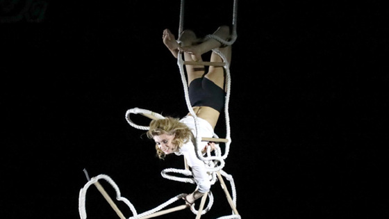 Московский театр мюзикла представил экспериментальный спектакль "Реверс". Постановка рассказывает о внешней и внутренней борьбе человека, проявляющейся в экстремальной ситуации. Актеры "РЕВЕРСа" стирают границы между драматическим и физическим театром, хореографией и акробатикой. Среди трюков — падения с высоты, полеты над зрителями, балансирование на динамических пилонах. "Мы рассчитываем, что зрители полностью погрузятся в нашу философию. Это спектакль-размышление, спектакль-мысль, спектакль, где задействованы пятнадцать человек, пытающихся найти выход всеми различными способами. Иногда даже пренебрегая правильными, позитивнымы человеческими качествами", — рассказал режиссер Андрей Кольцов в беседе с "Газетой.Ru". Экспериментальным стало и время спектакля — 23.00.
