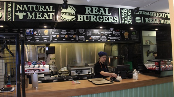 Заведение Real Burgers открылось 28 января в жилом доме на улице Ленина, 8 в центре Новосибирска. Бургерная заняла второй этаж, надстроенный над залом, где ранее открылась кофейня Organic Coffee. Оба проекта принадлежат одному владельцу — ресторатору Анатолию Чёрному. Зал бургерной на 40 с небольшим посадочных мест разделён на две части перегородкой. Четыре столика с простыми деревянными сиденьями вытянулись вдоль окон. В другой части зала посетителям приходится довольствоваться красочными фотографиями зеленого салата и банками с соленьями. Основное блюдо заведения — бургеры, которые здесь делают в двух размерах. Цены на «стандартные» бургеры начинаются со 150 рублей (столько стоит блюдо с курицей), чизбургер стоит 175 рублей, а самая дорогая позиция в этом разделе — бургер с лососем за 260 рублей. Более крупные булки с бифштексами стоят по 250-295 рублей. Особенностью здешних бургеров можно считать то, что название заведения выжигается специальным клеймом на булочке перед началом сборки. Как в большинстве сетей фаст-фуда, в Real Burgers есть детские наборы, включающие блюдо, напиток и игрушку — разные варианты стоят одинаково по 320 рублей. Real Burgers приходят на весьма насыщенный рынок. Буквально в 5-7 минутах ходьбы от заведения работают две точки новосибирской сети МясоRoob и две точки международных сетей фаст-фуда «Бургер Кинг» и «Карлс Джуниор». Кроме того, бургеры сегодня можно заказать практически в любом заведении, которое специализируется на мясной кухне. Для владельца Real Burgers — это первый опыт такого рода в Сибири, основной его бизнес расположен в европейской части России. Но и новосибирские компании активно выходят с этим форматом в другие регионы. Так сеть МясоRoob сейчас работает уже в семи городах. А новосибирская компания Ays Group в конце прошлого года открыла бургерную в Шерегеше.
