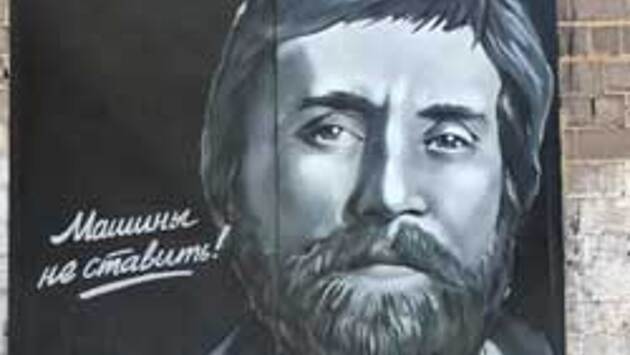 Челябинец нарисовал на воротах гаража портрет Высоцкого