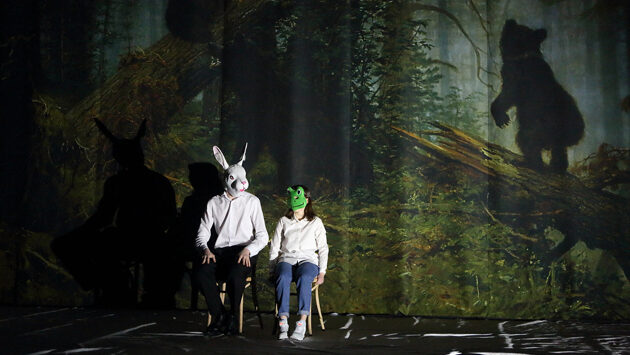 Студия театрального искусства, «Ромео и Джульетта. Киндерсюрприз» Мастерская Дмитрия Крымова и Евгения Каменьковича в ГИТИСе на сцене Студии театрального искусства выпустила «Ромео и Джульетту. Киндерсюрприз». Концепция Шекспира в целом не изменилось, но сути это вербатим о том, как взрослые буквально душат, берут измором юные души подростков, придираясь к бытовым мелочам, вроде беспорядка в комнате, криво висящих штор, отваливающегося карниза и другого бытового мусора, неспособные на настоящее сочувствие и понимание. Как это заведено еще художниками эпохи Ренессанса, для остроты восприятия темы героев переодели в современные костюмы, соорудив их из того же подручного бытового мусора жизни. Синьора Капулетти носит юбку с вертюгатом из оранжевой куртки дорожного рабочего, кормилица держит под мышкой ливретку, а влюбленные надевают а встречу маски зайчика и лягушки. Мастерская Петра Фоменко, «Египетские ночи» В Мастерской Петра Фоменко восстановили спектакль «Египетские ночи», так сильна ностальгия по золотой поре театра, по Мастеру у его учеников. Изящный элегантный Карэн Бадалов с кудрями до плеч в роли импровизатора синьора Пиндемонти словно демиург организует волшебное пространство — два часа без перерыва на сцене читают Пушкина и Брюсова, инсценируя историю Клеопатры, забиравшей жизни у своих любовников в обмен на ночь любви. Сценография и костюмы — даже неприличный плащ с золотыми фаллосами — сохранились от прежней постановки 2002 года. В возобновленном спектакле играют и вчерашние стажеры, и старики-фоменки: Юрий Буторин, Полина Кутепова, Наталья Курдюбова, Мадлен Джабраилова, Илья Любимов, Андрей Казаков, Александр Мичков, Антон Сергеев. Театр «Практика», «Черное море» В театре «Практика» Laboratory АВС выпустила пластическую драму — кукольный спектакль «Черное море». За политически конъюнктурным названием скрывается драма без слов о любви, любви к себе, начиная от детской к кумиру, такому, как, например, Брюс Ли, до любви в глубокой старости. Рядом с героем его кукольная спутница — то ли любимая женщина, то ли душа. Временами она нежится в его объятьях, а временами герой в прямом смысле слова ест ее мозг ложкой и подвешивает ее тело на люстре. Море в какой-то момент оказывается водой в писсуаре. Зато Брюс Ли присутствует постоянно. Режиссер — Кирилл Вытоптов, драматург — Игорь Гатин, хореграф — Олег Глушков. Спектакль играет команда кукловодов из Театра кукол им. С.В. Образцова, Московского детского театра марионеток и Московского театра теней.