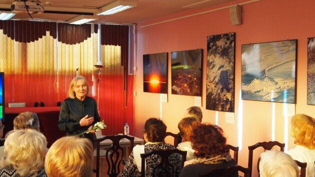 Перед гостями, собравшимися в Гагаринской гостиной, выступил Николай Рязанский - отец космонавта Сергея Рязанского, автора фотовыставки «Я приглашаю вас в космос». Николай Михайлович Рязанский – инженер-физик, вице-президент Федерации спортивного туризма , мастер спорта СССР, заслуженный путешественник России. В семье Рязанских три поколения ученых. Отец Николая Михайловича - Михаил Сергеевич Рязанский был соратником С.П.Королева, главным конструктором радиосистем ракетно-космической техники, а сын Сергей Рязанский стал первым ученым – командиром космического корабля. В полет космонавт-исследователь брал с собой фотографии близких людей, в том числе и фотографию деда. Н.М.Рязанский передал в музей библиотеки фотоснимки из семейного архива. Руководитель фестиваля «Первозданная Россия» Тамара Сергеевна Пантелеева рассказала об участниках выставки, представила редкие слайды, работы лучших фотографов. Приятным сюрпризом для всех стал просмотр мультфильма об огнёвке - рыжей лисице, ставшей символом фестиваля. Его авторы – дети, самые маленькие посетители выставки «Первозданная Россия».