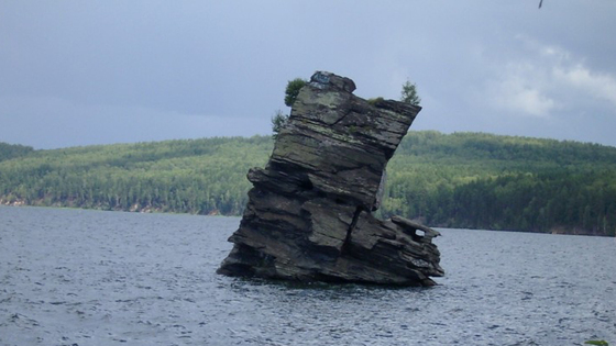 Мрачный силуэт скалы посреди озера хорошо заметен в любую погоду. Когда-то давно, местные племена использовали «Шайтан-камень» в качестве алтаря, где приносились кровавые человеческие жертвы. Свою дань угрюмый камень собирает и по сей день — каждый год в озере тонет по несколько человек.