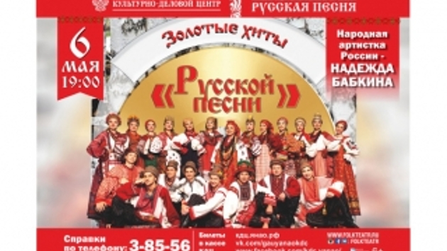 В преддверии великого праздника Дня Победы в Салехарде выступит народная артистка России Надежда Бабкина и ансамбль «Русская песня» с программой «Золотые хиты». Концерт пройдет 6 мая в 19:00 в Культурно-деловом центре. Как рассказали корреспонденту ИА «Север-Пресс» в Культурно-деловом центре, в концерте прозвучат популярные песни из репертуара ансамбля, большинство из которых привезены из многочисленных экспедиций по российским регионам. Имя Надежды Бабкиной неразрывно связанно с русской народной песней. Надежда Бабкина - основатель и бессменный руководитель широко известного в стране и за рубежом ансамбля «Русская песня», основанного в 1974 году. Стремление Надежды Бабкиной к сохранению исторических корней русской национальной культуры, в частности, народных песенных традиций, прослеживается на протяжении всего творческого пути её работы с коллективом.