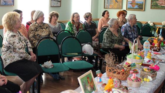 Ставшая уже традиционной встреча с отцом Алексеем Сорокиным прошла накануне в центре «Забота». Ветераны встретили гостя концертом, выбрали и лучшие поделки, которые мастерицы культурно-досугового центра создавали к празднику Пасхи. В течение месяца вологжане почтенного возраста готовились к конкурсу пасхальных композиций. Работы представили в различных техниках – плетение, роспись, вязание. Жюри выбрало 4 лучших «сувенира». Ими стали работы из природных материалов, выполненные в особых техниках, таких как филигрань и гильоширование. Добавим, подобные встречи и выставки в центре «Забота» проходят постоянно. Их посвящают государственным и православным праздникам. Для вологжан пенсионного возраста это возможность проявить свои творческие способности. Всего в центре сейчас работает порядка 100 различных кружков и секций.
