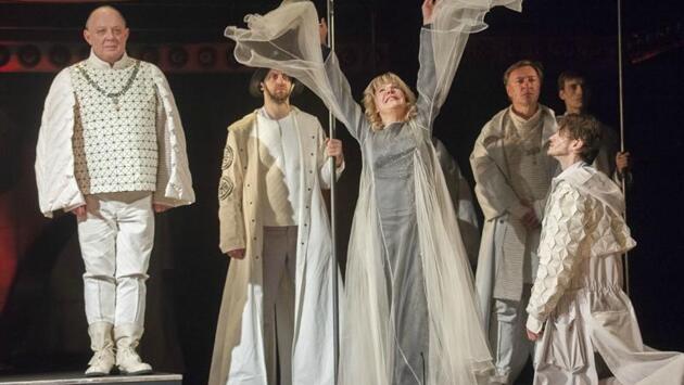 Новая постановка Марка Захарова — тот самый случай, когда при всем почтении и обожании хочется пожелать, чтобы мэтр сделал поскорее что-то другое, чтобы перекрыть нынешнюю неудачу. Да, в программке режиссером значится Игорь Фокин, но это «руки», а голова в Ленкоме всегда Захаров. Говорить о том, что «Фальстаф и принц Уэльский» получился безвкусным, архаичным и бессильным, очень неловко. Но тут чем врать, так лучше правду, тем более что правда всегда субъективна и поэтому простительна. «Фальстаф...» — фантазия-фарс, где за основу взяты «Хроники» Шекспира, точнее, пьеса «Генрих IV». Главные герои спектакля — принц Уэльский, будущий король Англии (Дмитрий Певцов), влюбленная в него леди Перси (Александра Захарова) и толстый обжора и гуляка Фальстаф (Сергей Степанченко), соратник принца по грабежам и попойкам в трактире «Кабанья голова». Фото: lenkom.ru Марк Захаров текст по шекспировским мотивам писал сам и обещал, что спектакль будет напоминать по духу его постановки в содружестве с Григорием Гориным. И какие-то горинские интонации и фразочки — например, о том, что сейчас не поймешь, кто сошел с ума, — тут и правда там-сям имеются. Но все они тонут в обилии пошлых и, честно говоря, занудных шуток Фальстафа про говно, пидорасов (очень злободневно, как же без этого!) и умение вовремя обмочить штаны. При этом по замыслу Фальстаф не просто лоботряс, тискающий трактирщицу миссис Квикли (Наталье Щукиной приходится все время взвизгивать, и это, собственно, вся ее роль). Фальстаф — классический шут. То есть не без благородства, самопожертвования и принципов. Замысел угадывается в паре сцен, но не убеждает и вообще выглядит излишеством. Зато публика в восторге от того, что в финале сбежавший от былого дружка-принца сэр Джон в знак протеста являет ей обширную задницу в красной юбке — и зрителю не без оснований кажется, что ради этой задницы, этих нафталиновых шуток и канканов все и затевалось. Король Генрих IV, Игорь Миркурбанов, в первом акте выезжает в прозрачной кабине как музейный экспонат, вальяжно пыхая трубкой, и учит принца править государством (на премьере его реплик не было слышно, потому что у Миркурбанова вырубился микрофон). Во втором акте короля выносят на носилках, и он, умирая (не видно было, с трубкой или нет), говорит нравоучения слегка блатными интонациями Лорда из богомоловского «Идеального мужа». Это по-настоящему комично, и если даже это не режиссерская находка, а просто привычный имидж Игоря Миркурбанова, то все равно удачно вышло. В постановке заняты лучшие актеры Ленкома, но взаимодействия, этой чудесной театральной химии между ними нет совсем. Даже в дуэте Певцова и Александры Захаровой (ей отдана львиная доля сценического времени) — хотя актеры очень стараются вдохнуть жизнь в свой дуэт. Но дело не в них, дело в самой постановке, которая просто плохо сшита. Неловко смотреть на блистательных актеров, которым даны ладно бы просто маленькие, но и невнятные, как случайные паззлы, роли — ну например, Иван Агапов пробегает пару раз по сцене с репликами о тяжелой судьбе гонца. Иван Агапов, один из интереснейших актеров России! Фото: lenkom.ru От скуки начинаешь разглядываешь костюмы и сценографию. Вот тут действительно все на высоте. Костюмы бело-серые, причудливой геометрии и фактуры. Леди Перси — в белых пышных юбках, король в модном расхалд