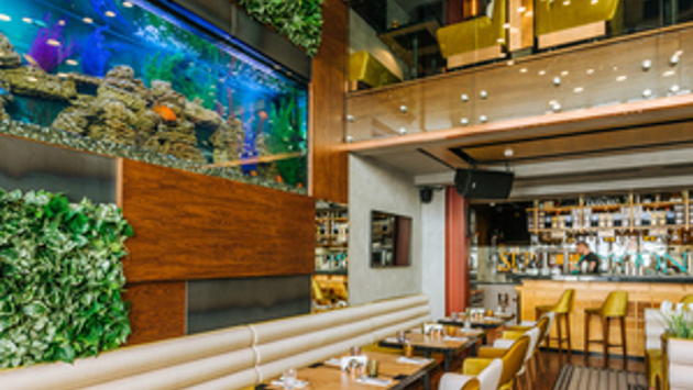 В пешей доступности от Красной площади теперь едят и поют караоке в формате 24/7, сообщают наши коллеги из Restoclub. При создании очередной концепции ресторатор со стажем Вячеслав Семендуев решил отдать дань памяти двум своим закрытым заведениям — "Эльдорадо" и "Ля гурмэ". Добрую половину меню Sun&Moon составляют хитовые позиции этих некогда знаменитых и очень успешных заведений. Ресторан обосновался в старинном особняке на Большой Никитской: группа итальянских архитекторов реставрировала здание в течение двух с половиной лет. Интерьер, впрочем, с историческим не имеет ничего общего: Sun&Moon — это современное европейское бистро в жизнерадостной гамме. Второй этаж представляет собой балкон, благодаря чему сохраняется ощущение простора. Не так уж часто в последнее время можно услышать об открытии ресторана с фокусом на традиционной европейской кухне. Ее в Sun&Moon представляют как раз-таки проверенные временем блюда из меню "Эльдорадо" и "Ля гурмэ". Кроме того, здесь предлагают модный авторский comfort food от Вячеслава Казакова ("Ностальжи", GQ Bar, "Облака") и Светланы Устиновой ("D.O.M.", Twins). Среди стартеров роль европейской "классики" исполняют, например, вителло-тоннато (590 руб.) и тревизский салат с домашним беконом, яблоками и соусом блю-чиз (640 руб.). Можно вместо закуски взять французский луковый суп (350 руб.), а продолжить традиционно европейскую трапезу котлетой де-воляй с картофелем "Пон-Неф" (470 руб.) или ризотто с кроликом (650 руб.). Если же говорить об авторских находках тандема поваров, то можно отметить среди прочего фаршированные кальмары с кремом из сельдерея и грушевым тартаром (790 руб.), севиче из тунца с острыми огурцами и маринованным редисом (590 руб.), а также подкопченный лосось с морковным пюре и соусом из кокосового молока (890 руб.). В ближайшем будущем ресторан запустит летнюю веранду: сейчас ее обустраивают на крыше здания. С нее откроется приятный вид на перспективу Большой Никитской и Храм Вознесения Господня. Что касается караоке, то для него оборудован отдельный зал с мини-сценой, а из прочих развлечений в Sun&Moon — еженедельные диджей-сеты. Средний чек: 1800 рублей (без напитков) Адрес: ул. Б. Никитская, 15, cтр. 1