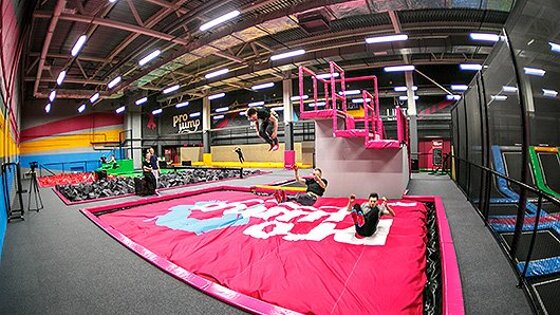 Батутный парк ProJump спроектирован по шведской концепции согласно европейским стандартам безопасности. На 2100 кв.м развлечений располагается 10 игровых зон разных уровней сложности: вышибалы, воздушная подушка AirBag, хождение по стенам, акробатическая дорожка, поролоновая яма, баскетбол на батуте, спортивные батуты, аэробол, битва на бревне, хождение по стропе. Для детей от 1,5 до 3 лет сконструирована специальная зона с мини-батутами и горкой. В ресторане всегда есть свежая горячая еда и напитки. В меню помимо бургеров и пиццы есть паста, салаты, котлеты, гарниры, разнообразные десерты. При парке есть секции по прыжкам на батуте для детей от 3 лет и джампинг фитнесу для ребят от 18 лет. Переодеться и разместить свои вещи можно в просторных раздевалках, оборудованных душевыми кабинами и запирающимися индивидуальными шкафчиками. Стоимость одного часа занятий - от 600р., действуют различные тарифы оплаты, проводятся разные акции и розыгрыши. Здесь можно отметить детский день рождения, корпоратив, выпускной, провести занятие для школьников или детсадовцев, потанцевать на батутной дискотеке.