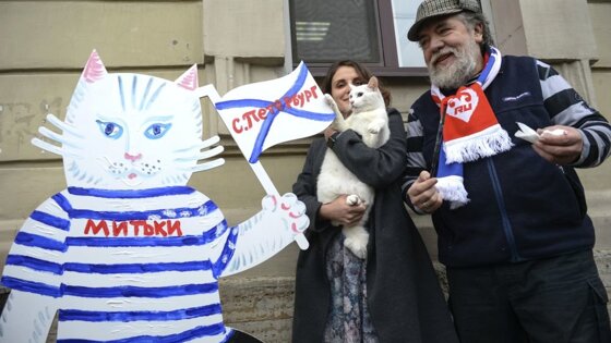 Как сообщили организаторы акции, проводимой компанией "Кот здоров!" совместно с "Республикой кошек" и Клубом болельщиков сборной России RUSSIA UNITED, поскольку официальным оракулом чемпионата был выбран белоснежный эрмитажный кот Ахилл, фигуру сразу выкрасили в белый цвет, а Шагин при помощи красок "нарядил" ее в форму болельщика.