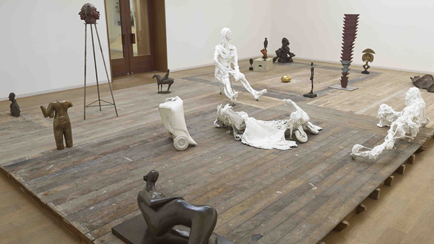Генеральная репетиция Московский музей современного искусства на Петровке до 16 сентября Проект на несколько месяцев занял все три этажа ММОМА на Петровке: в экспозицию вошли произведения из коллекции Фонда V-A-C, ММОМА и Фонда KADIST (Сан-Франциско — Париж). На первом этаже расположилась инсталляция Майка Нельсона из скульптур модернистов (Бранкузи, Джакометти, Мура) и современных авторов (Павла Альтхамера, Шерри Левин и др.). Второй этаж превращен в пространство-сцену, «действие» на которой разворачивается в трех премьерных показах в течение весны и лета. Верхний этаж стилизован под открытое хранилище музея, вмещающее более двух сотен произведений (Владислав Мамышев-Монро, Энди Уорхол, Джефф Кунс). [Подробнее] Александр Колдер. Иллюстрация к изданию «Эрскин Колдуэлл. Похождения Алана Кента». 1976. Цветной офорт. Собрание Бориса Фридмана Скульпторы и Livre d’artiste ГМИИ им. А.С. Пушкина, Галерея искусства стран Европы и Америки XIX–XX веков до 2 сентября Коллекция произведений в жанре книги художника (livre d’artiste), собранная Борисом Фридманом, широко известна и в Москве экспонировалась неоднократно. В его собрании хранятся книги, сделанные Пабло Пикассо, Ильей Зданевичем и другими корифеями мирового авангарда. В нынешнюю экспозицию вошли вещи, над которыми работали скульпторы — Аристид Майоль, Осип Цадкин, Ханс Арп и другие, — прославившиеся также как искусные графики и рисовальщики. [Подробнее] Надежда Петрова-Леже (Надя Ходасевич-Леже). В.В. Маяковский в 1910 году. 1953. Холст, масло. Государственный музей В.В. Маяковского Сотый апрель. Выставка из собрания Государственного музея В.В. Маяковского Проверка на прочность. Избранные произведения из коллекции Екатеринбургского музея изобразительных искусств ВДНХ, павильон «Рабочий и колхозница» до 9 сентября Две выставки заняли пространство павильона «Рабочий и колхозница». В разработанной ВДНХ программе межмузейного обмена Музей Маяковского представляет своего главного героя. В экспозиции можно увидеть «живого», а не академического Маяковского: личные вещи, ранние фотографии, автошаржи и автопортреты, посвященные поэту произведения его друзей, прижизненные иллюстрации его поэм и стихотворений. Отдельный сюжет рассказывает о том, как складывался культ Маяковского: памятники, названия улиц, фарфор, марки и открытки с его портретами. Екатеринбургский музей показывает выставку, посвященную идее сопротивления в самом широком смысле. Главный ее аспект — индустриальная тема в искусстве Урала: человек, подчиняющий себе непокорные земные недра и тем самым созидающий будущее. На выставке можно увидеть как работы увлеченных индустриальной темой московских и ленинградских классиков советского периода — Самуила Адливанкина, Александра Лабаса, Юрия Пименова, — так и произведения уральских художников разного времени. [Подробнее] Олег Кулик. Теннисистка. Из проекта «Музей природы». 2002. Воск, смешанная техника, витрина — металл, стекло. Собрание Екатерины и Владимира Семенихиных Искусство 2000-х Новая Третьяковка до 22 июля Новый проект Третьяковки рассказывает об авторах, вышедших на авансцену в 2000-е годы, а также тех, кто заявил о себе в предыдущее десятилетие, но в «нулевые» поменял стратегию или форму высказывания. На выставке представлены работы Анатолия Осмоловского, Владимира Дубосарского и Ал