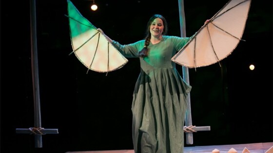 Само появление "Птиц" тоже связано с XV Всероссийским фестивалем театрального искусства для детей "Арлекин" – в 2016 году работа Марии Романовой, "Странствия Нильса", стала лауреатом в номинации "За лучший спектакль" и театр получил средства на новую детскую постановку. Коей и стали "Птицы". Так что неудивительно, что внимание к ним было на фестивале вдвойне пристальным. Литературная основа спектакля – три в разной мере известные массовому читателю русские народные сказки: "Белая лебедушка", "Привередница" (чаще публикуется как "Гуси-лебеди") и "Белая уточка". При этом они не сведены в единый сюжет, а существуют как самостоятельные, полноценные истории, идущие одна за другой. Фото: Театр Ленсовета/Ю. Смелкина Уже в названии спектакля акцентируется принцип, по которому выбраны эти сказки – во всех них действуют птицы: будь это лебедушка, которая превращается в девушку, а потом рвется душой к улетающей стае; или покорные злой воле Бабы Яги гуси-лебеди; или же обращенные в уточек царица и ее дети. Однако эта "птичья" связь является символическим, но не тематическим стержнем триптиха. Лиричная "Белая лебедушка" играет роль некоего пролога – вводит зрителя в предметно-текстовый язык спектакля и задает доминирующую тему постановки: "семья". Эта сказка – иносказательное представление свадебного обряда, во время которого девушки прощаются со своей прошлой жизнь и переходят в иное качество: жены, матери, хозяйки. И, как и любое прощание, он печален – даже если впереди лежит новая, пусть и чуть другая жизнь. Фото: Театр Ленсовета/Ю. Смелкина Следующая за "Лебедушкой" безумно яркая, лубочно-балаганная "Привередница" вступает в некоторый диссонанс с уже заданным лирическим настроением. Здесь не хватает смысловой паузы, какого-то переходного звена, времени на то, чтобы осмыслить предыдущую историю – и подготовиться к новой. Полукуклы-полуактеры, лихо отбивая ритм деревянными ножками, рассказывают об ответственности и взрослении. Припевка-частушка оборачивается – как гадкий утенок из сказки совсем другой страны и эпохи – уроком хороших манер и умения осознавать последствия своих действий. "Белая уточка" – своеобразная кода всего спектакля. Она напоминает нам, что народные сказки – не сусально-сахарные побасенки. Это жесткая и даже жестокая история, где царицу топят в ручье, а детишкам-утятам сворачивают шеи. И пусть это показано символично – трещат лишь шейки деревянных игрушек, слезы рассыпаются жемчужными бусинами, а безутешные родители надевают грубо вытесанные маски – но зритель уже существует в этом образном языке спектакля и воспринимает происходящее как объективную реальность. Фото: Театр Ленсовета/Ю. Смелкина Художник постановки, Мария Лукка, создала предметный мир "Птиц" из ткани и дерева, бумаги и зеркал. Здесь минимум "закрепленных" декораций – маятники, которые служат качелями, да колесо, изображающее то солнце, то летящую лебединую стаю. Весь остальной реквизит ловкостью рук видоизменяется, в зависимости от сюжета – валенок становится конской головой, зеркала вытягиваются в студеный ручей, а беленые полотнища опадают сброшенными птичьими крыльями. Так же прост и по-природному чист и звук "Птиц". Особенность музыкального оформления спектакля в том, что это и не "оформление" вовсе. Опытный фольклорист Елизавета Бородулина подобр