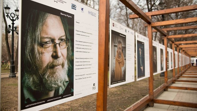 Выставку готовили к Всемирному дню поэзии. Но поэзия - дело тонкое, в циркуляры не умещающееся, и открытие выставки состоялось в Библионочь. Сама же выставка проходит в рамках празднования двухсотлетия Ивана Тургенева. Несмотря на штормовое предупреждение и грозовые тучи, цвет нашей поэзии собрался в назначенный час на Страстном бульваре, где-то посередине между памятниками Пушкину и Высоцкому. На вернисаже можно было увидеть Олесю Николаеву, Константина Кедрова, Евгения Бунимовича, Владимира Вишневского, Евгения Чигрина, Ольгу Ильницкую, Инну Кабыш, Надежду Кондакову, Елену Кацюбу, Сергея Белорусца, Андрея Коровина и других. Выставку открыли начальник Управления по развитию культурных центров Александр Бодров, президент Русского ПЕН-центра Евгений Попов, художественные руководители проекта - директор Библиотеки искусств им. А.П. Боголюбова Владимир Семёнов и поэт, член Исполкома Русского ПЕН-центра Андрей Новиков-Ланской.