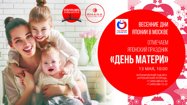 Празднование Дня мамы – часть масштабного проекта «Культура жить. Активное долголетие», приуроченного к перекрестному году «Россия – Япония». Проект, поддержанный Министерством культуры России и посольством Японии, был инициирован медицинской корпорацией RHANA и ее лидером – академиком РАЕН Екатериной Дибровой, которая 17 лет занимается технологиями активного долголетия и выстроила за эти годы тесные связи с Японией – страной, где уделяется особое внимания продолжительности и качеству жизни.