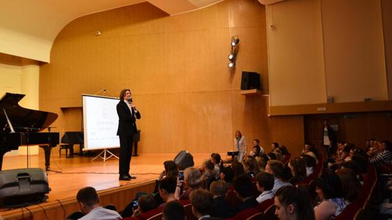 Творческая встреча с народным артистом России прошла сегодня в концертном зале Вологодского областного колледжа искусств. Ученики музыкальных и общеобразовательных школ, студенты колледжей из первых уст узнали об истории успеха Дмитрия Маликова. Известный артист в рамках проекта «Уроки музыки» дал юным вологжанам советы, как найти себя в музыкальной сфере. Дмитрий Маликов известен как эстрадный исполнитель, однако сегодня артист показал себя в роли пианиста. Классические произведения Дмитрий Маликов сегодня исполнял на фортепиано. За движением рук артиста следили молодые вологжане. «Я вообще не думал быть певцом, учился на классического музыканта. В 14 лет советы отца и увлечение эстрадной музыкой привели к тому, что я стал писать музыку. Мне кажется, что подросткам трудно определиться с выбором профессии, и я думаю, наша встреча даст какие-то подсказки ребятам», – рассказал народный артист России Дмитрий Маликов. О музыке, творчестве и жизни в открытом диалоге говорили сегодня юные вологжане с Дмитрием Маликовым. «Урок музыки» – это общение с человеком, который достиг мастерства в своем деле. По словам народного артиста, в юном возрасте важно иметь наставника. «Я учусь игре на фортепиано. От Дмитрия хотелось узнать, как это – сочинять музыку и чего можно добиться в искусстве. Сейчас у меня наставник – это мой музыкальный учитель, возможно, теперь буду равняться на кого-то еще», – поделилась ученица Центра образования № 23 «Созвучие» Вероника Брасловская. География проекта «Урок музыки», который Дмитрий Маликов открыл в 2012 году, охватывает разные города страны – от Калининграда до Новосибирска. Только за первые три года в мастер-классе артиста приняли участие порядка 50 тысяч человек. В этом году Дмитрий Маликов посещает малые города, Вологда стала исключением. «Я здесь был в 2013 году, меня сюда тянуло вернуться. Сегодня я посетил места моего святого – Дмитрия Прилуцкого, здесь у меня друзья. Сегодня я чувствую счастливым, готов передать свои эмоции детям. Проект я теперь называю, как «Уроки жизни», потому что часто дети задают разные вопросы, не связанные с музыкой», - поделился народный артист России Дмитрий Маликов. «Уроки музыки» проходят по всей стране бесплатно. «Счастливые билеты» на встречу с Дмитрием Маликовым для некоторых вологжан оказались сюрпризом. «Мы с сестрой участвовали в городском конкурсе «Была весна, была победа», в качестве подарка нас пригласили на «Урок музыки». Встреча с Дмитрием Маликовым – очень знаковая для всей Вологды, я считаю. Мы подчеркнули для себя как теоретические аспекты музыки, так и зарядились внутренне», - поделилась учитель музыки из поселка Огарково Вера Смирнова. Возможно, «Урок музыки» станет для кого-то стимулом для дальнейшего развития. Проект реализуется при поддержке компании «Ростех». Теперь и юные вологжане побывали на занятии от звезды российской эстрады.