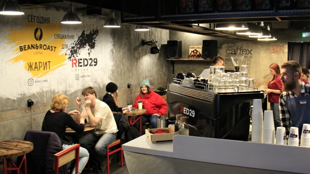 Кофейня RED29 начала работать вчера вечером в здании Облпотребсоюза (Красный проспект, 29), где заняла место закрывшейся ранее «Планеты суши». Заведение имеет два уровня. На первом расположена барная стойка, где нужно самостоятельно делать заказ и несколько столиков. Основная часть посадочных мест вынесена на второй этаж. Помещение оформлено в стиле лофт (крашеный бетон, металл, дерево), по всему залу размещены электрические розетки. На первом этаже стоит проигрыватель для виниловых пластинок, на который каждый посетитель может поставить понравившийся диск. В кафе есть место, где можно помыть руки, но пока нет туалета. Однако сотрудники предлагают воспользоваться туалетом соседнего ресторана «Иль Патио» куда из кофейни можно попасть напрямую. Цены на кофе начинаются со 100 рублей (эспрессо, американо), альтернативные способы заваривания (кемекс, аэропресс и т.д.) стоят 150 рублей, раф-кофе с добавками – от 160 рублей. Из необычных кофейных напитков можно отметить капучино с перцем чили и пластинкой жареного бекона (210 рублей). Из еды в меню пара салатов (от 120 рублей), сэндвичи (от 150 рублей) и бургеры (280 рублей). Один из видов бургеров (перечный) подается с одноразовым шприцом, который наполнен острым соусом и воткнут в булку сверху так, чтобы посетитель мог само регулировать остроту своего блюда. В кофейне продается также бутилированное пиво и вино (в том числе игристое). Цены начинаются от 350 рублей за бутылочку объемом 0,33 мл. По данным системы «Контур.Фокус», основным владельцем компании ООО «ПС Новосибирск 1», которая управляет заведением, является Татьяна Кох, она же указана в качестве руководителя компании, которая управляет новосибирскими заведениями корпорации «Росинтер» (сети «Иль Патио», «Планета Суши», «Шикари»). Из новосибирских заведений по стилистике Red29 ближе всего к кофейне «Креп де кофе» ресторатора Владимира Бурковского. Там, правда, упор делается на блины и нет алкоголя. Послушать виниловые пластинки за чашкой кофе в центре можно так же в кофейне Pitchii Coffee and Waffles на улице Ленина.