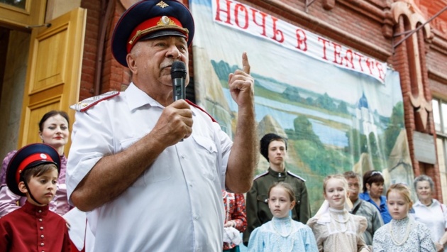 Вчера, 31 мая, Казачий театр организовал для волгоградцев и гостей города знакомство с казачьей культурой и бытом. На улице гостей «Ночи в театре» встретили взрослые и детские казачьи ансамбли с заводными песнями и плясками. А внутри театра посетителей ждали 12 интерактивных площадок. На «островке» с традиционными музыкальными инструментами станичников можно было рассмотреть и подержать в руках бубен, коробочку, трензель, гусли, релей и балалайку. Чуть позже сотрудники театра показали, как пользоваться этими инструментами, и рассказали о музыке, сопровождающей казаков всю их жизнь. Музыка — обязательная составляющая жизни казака На другой площадке областной краеведческий музей представил часть своих экспонатов, посвященных истории Донского казачества. Посетители увидели традиционные казачьи наряды конца девятнадцатого — начала двадцатого века, посуду, сундуки и другие предметы быта. — Сегодня мы показываем более сорока предметов из нашей выставки. Здесь есть повседневный костюм казачки. Они очень любили наряжаться, особенно у них в нарядах доминировал розовый и малиновый цвет. Еще одно платье, несмотря на то, что оно не белое, а бледно-зеленое, является свадебным нарядом, — рассказала V1.ru представительница музея. — Тут же и традиционный мужской костюм, подлинный сундучок, с которым казаки ходили на войну, и даже поршни — кожаные лапти станичников. Волгоградцы с удовольствием подпевали казакам Особенно популярной оказалась площадка, представляющая традиционное казачье оружие 19 века. Посетители рассматривали шашки, кинжалы, камчу (нагайку) и фотографировались с ними, а позже им показали, как всем этим пользоваться. — От оригинала эти макеты отличает только то, что они не заточены, — рассказали «оружейники». — А еще здесь есть небольшая деревянная шашка, с помощью которой учили драться маленьких казачат. Оружие заинтересовало и детей, и взрослых Маленькие волгоградцы увидели представление кукольного театра «Донка», после которого они попробовали свои силы в роли настоящих кукловодов. — Казачий театр кукол для детей отличается от привычного нам кукольного театра, — рассказали в театре. — Кукловод не прячется за полотном, а накрывается ковром и разыгрывает сценку, в которой ему помогают специальные певчие. Спектакль пришелся по вкусу детворе «Мастерская чудес» представила поделки своих рукодельниц. Волгоградцы могли приобрести вязаные игрушки, красивые заколки и ободки, сувениры и мыло ручной работы. На втором этаже театра показали фильм «Тихий Дон» 1957 года, а в театральном зале «Царицынские хроники» выступил студенческий театр «Горхоз», рассказавший зрителям об истории Царицына. Завершил насыщенную программу «Ночи в театре» самый обсуждаемый спектакль этого сезона «В пылающей тьме», который прошел на открытой сцене с участием оркестра театра. Гостей собралось очень много
