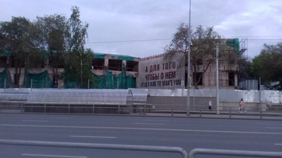 Фасад Фабрики-кухни завода имени Масленникова в Самаре всё-таки спрячут от посторонних глаз. Но используют для этого не простой информационный баннер, а произведение известного художника Юрия Альберта. Юрий Альберт — художник-концептуалист. Его работы входят в собрания Третьяковской галереи, Русского музея, европейских и американских музеев. — Идея разместить его высказывание на фасаде памятника конструктивизма принадлежит Роману Коржову, — сообщает его супруга Неля. — Это масштабное произведение, обращенное в город, можно считать событием историческим. Только искусство по-прежнему продолжает поддерживать эти стены. После завершения реконструкции в здании Фабрики-кухни разместят Средневолжский филиал Государственного центра современного искусства. Его директором назначили Роман Коржова. Он является организатором выставок в Самаре, Ширяевской биеннале современного искусства, а также одним из учредителей фонда «Центр современного искусства». На гигантских баннерах, которые спрячут за собой полуразобранные стены Фабрики-кухни, Юрий Альберт сделал надпись: «Искусство не для того, чтобы на него смотреть, а для того чтобы о нем думать». Она дублируется на английском языке. Здание Фабрики-кухни было построено в 1932 году по проекту архитектора Екатерины Максимовой. Планировочная конфигурация представляет собой скрещение серпа и молота, символа единства рабочих и крестьян. Реставрировать здание начали в 2016 году. Но сроки проведения работ затянулись сначала из-за проблем с финансированием, а затем по причине недопонимания между подрядчиком и заказчиком. Во время проведения работ возникла необходимость в корректировке проекта. В результате архитекторы забили тревогу. Они потребовали срочно укрепить здание, чтобы оно не обрушилось под воздействием осадков. На зиму здание решили законсервировать, но и с этим возникли проблемы. Работы по реставрации здания планируют продолжить. По информации областного Министерства управления финансами, в региональном бюджете предусмотрели на эти цели 120 млн рублей. Кроме того, чиновники ожидают поступления денег из федеральной казны.