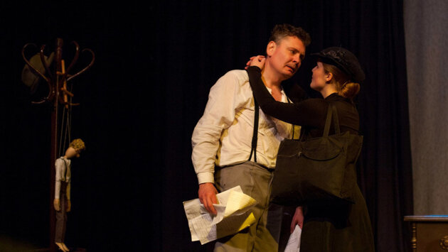 Не "похабник и скандалист". Не бесшабашный крестьянский парень и не кумир женщин... Человек на границе между сном и реальностью. Сюрреалистическая постановка "За крапивой берег" стала попыткой проникнуть в последние минуты жизни поэта. Есенина сыграл актер театра Алексей Щербаков, Дама в черном - молодая актриса Татьяна Дяченко. Режиссер-постановщик Валентина Яновец, принимающая поздравления после великолепного представления 6 июня, рассказывает, откуда взялась идея поставить спектакль. - Есенин - один из крупнейших мифов. Максим Горький, который почитал поэта, писал после смерти Есенина, что его жизнь и творчество - художественный роман. Большую часть своей жизни он сыграл - как первые артисты МХАТА, на разрыв, поэт ведь сам признавался, что приехал в Москву за бронзовым монументом. Мы показываем последние моменты его жизни. Ведь до сих пор мы точно не знаем, что произошло в ту ночь. Некоторые абсолютно уверены, что он сам ушел из жизни. Другие говорят, что ему помогли это сделать. Но точно не знает никто. Мы шли к спектаклю четыре года. - С главным героем определились сразу, понимаю, а как выбирали актрису? - Все вначале вокруг "Черного человека" крутилось. Подумалось, а почему бы Черным человеком не быть даме? Татьяна недавно пришла в театр, хорошо о себе заявила. Задача перед ней ставилась сложная. Алексей играл одного героя, а она - множество. В том числе Черного человека. - Мать Есенина, возлюбленные - Галина Бениславская, Софья Толстая, Зинаида Райх, Айседора Дункан, Черный человек... Столько противоречивых ролей в одном спектакле. Трудно было перевоплощаться? - интересуюсь у Татьяны Дяченко. - Во мне есть частичка от каждой героини, я это поняла. Влюбилась в Есенина во время репетиций, раньше его не так чувствовала. Перечитала очень много книг. Для образа жены и музы Есенина Зинаиды Райх изучала ее биографию. Очень помогал костюм. Когда ты его надеваешь - пластика меняется. Приходит образ, речь другая... Сюрреалистическая постановка "За крапивой берег" стала попыткой проникнуть в последние минуты жизни поэта Что касается Алексея Щербакова, то актер (к слову, россиянин) считает "За крапивой берег" новым этапом в жизни: - Постановка о Есенине была моей мечтой, получилась работа длительной, сложной, поскольку как такового сценария не было. Изучили много материала. Биографию, а ее Есенин, как известно, не раз переписывал, воспоминания его друзей, которые, считаю, подливали масла в огонь, представляя поэта алкоголиком и буяном. Есть факты, опровергающие это. Как все гении, Есенин немножко сумасшедший. Сам он ушел из жизни или ему помогли? Мы представили зрителям свой вариант того, что с ним могло происходить в последние минуты. Наше повествование не претендует на документальность.