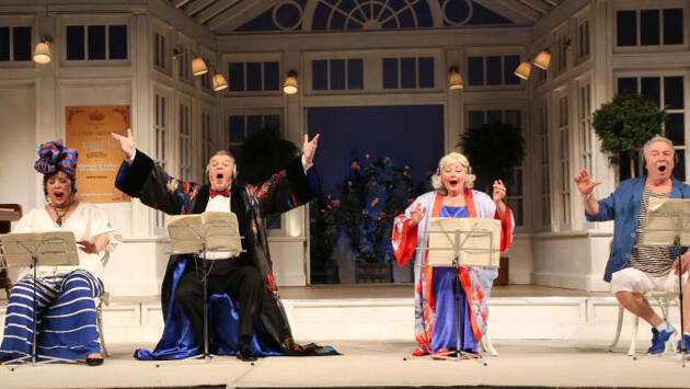 На сцене Театра сатиры — премьера спектакля «Брависсимо» по пьесе британского драматурга Рональда Харвурда «Квартет». Это история о четырех пожилых артистах, которые не мыслят себя вне сцены. Худрук театра, народный артист России Александр Ширвиндт, обратил внимание на «Квартет», подыскивая материал для так называемого разговорного спектакля: минимум сценографии, максимум монологов. Художник Зиновий Марголин и вправду обошелся минимальными средствами — на сцене выстроена белоснежная застекленная веранда с треугольной крышей, стоят цветы в кадках, виднеются белые стулья с изогнутыми изящными ножками и такой же белоснежный диванчик. Отдельным теплым пятном в этом белом безмолвии высится открытое пианино. По словам Александра Ширвиндта, ему захотелось через стилистику сценических взаимоотношений героев вернуться к тому, чему его учили великие педагоги еще в институте: «Чтобы четыре хороших актера попытались о чемто поговорить между собой и с залом». В итоге получился бенефис квартета Светланы Рябовой (Джин Хортон), Зинаиды Матросовой (Сиссилия Робсон), Юрия Васильева (Реджинальд Пейджет) и Олега Вавилова (Улфрэд Бонд), которые рассказывают историю стареющих оперных певцов, в свое время слывших лучшими исполнителями оперы «Риголетто». Позади у них мировая слава, овации переполненных залов лучших площадок мира, диски с многомиллионными тиражами. Впереди — большой концерт в честь дня рождения Верди. Но только вот петь они будут не на оперной сцене, а в доме престарелых. Кто и как из них попал в это заведение, зритель узнает из монологов, которые постепенно срывают маски с героев. Так, например, Улфрэд Бонд, герой Олега Вавилова, — человек, слывущий ловеласом, все разговоры которого сводятся к теме секса и покоренных женских сердец, оказывается на пов ерку примерным семьянином: тридцать пять лет прожил с одной женщиной, оставаясь ей верен, а когда она умерла, поселился здесь. Его партнер Реджинальд Пейджет (в исполнении Юрия Васильева он — нежный, отзывчивый, добрый человек) всячески старается забыть прошлое. Молодая жена Джин бросила его, причем брак их продлился всего пять часов. Травма по сей день бередит его душу. Но прошлое часто настигает нас именно для того, чтобы развязались какие-то узлы. «Сбежавшая невеста» Джин Хортон внезапно возникает на пороге дома престарелых, взрывая спокойное течение жизни в нем. Светлана Рябова делает свою героиню парадоксальной, ветреной и трогательной одновременно. Она всю жизнь сорила деньгами мужчин, меняя мужей, как перчатки. Она путешествовала, жила в шикарных квартирах, пока однажды не узнала, что разорена. Старость, как и бедность, обрушились на героиню внезапно, застав врасплох. Ей пришлось переселиться в дом престарелых, где она и встречает Реджинальда, от которого когда-то сбежала. Четвертая участница квартета — знойная Сиссилия Робсон — мечтает лишь об одном: доехать до Индии, где когда-то умерли ее родители, чтобы найти их могилы. Каждый из героев рассказывает свою историю, наполненную любовью, обидами, победами. И для каждого музыка служит живительной стихией. В спектакле люди искусства обсуждают темы искусства, что характерно для творчества Харвурда. В постановке Александра Ширвиндта тоже есть несколько глубоких и, главное, актуальных мыслей, которые режиссер заставляет 