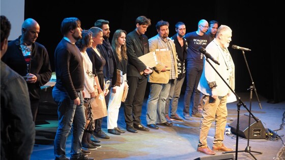 Финалисты представляют Москву, подмосковные Химки, Санкт-Петербург, Тюмень, Омск. В жюри Фестиваля в этом году вошли известные деятели литературы и искусства. Среди них - поэт и драматург Елена Исаева; поэт и педагог Евгений Бунимович; директор Государственного музея В. С. Высоцкого Никита Высоцкий; ректор ГИТИС Григорий Заславский; ректор РГСУ Наталья Починок; поэт Всеволод Емелин; поэт, лидер группы "Бахыт-Компот" Вадим Степанцов; поэт, писатель, сценарист Александр Вулых; директор государственного музея С. А. Есенина Светлана Шетракова; издатель Екатерина Сургутанова (Испания); ведущий актёр театра Содружество актёров Таганки Владимир Завикторин; поэт, преподаватель Литературного института им. Горького Сергей Арутюнов; режиссёр и журналист Михаил Довженко; поэт и писатель Николай Калиниченко; зам. директора государственного музея А. С. Пушкина Наталья Михайлова; режиссёр, продюсер, сценарист Константин Фам, поэт, писатель, пародист Алексей Тараканов; поэт, писатель Валерий Двойников (Бельгия); актёр и телеведущий Михаил Полицемайко и другие. Фото: vk.com/Филатов-фест Председателем жюри IV "Филатов - феста" стал Игорь Волгин, поэт, литературовед, доктор филологических наук, профессор факультета журналистики МГУ им. М. В. Ломоносова и Литинститута им. А. М. Горького. У каждого из участников было пять минут на выступление. Поэты выходили на сцену и читали. Одни активно играли - двигались по сцене и жестикулировали, другие читали вдумчиво и размеренно, - как будто заново вслушиваясь в звучание своих стихов. И давали вслушаться зрителям. Победителем в этом году стал Евгений Дьяконов (Санкт-Петербург). Приз зрительских симпатий получила Екатерина Яшникова (Москва). Стихотворение Е. Дьяконова "Четверг – рыбный день" запоминается благодаря ярким и жёстким образам. Его внятность, поэтическая многослойность и, в то же время, - не свойственная поэзии рациональность, - похоже, основные составляющие сегодняшней поэзии. Е. Яшникова получила приз зрительских симпатий благодаря своему пронзительному и очень жизненному стихотворению, написанному от лица мужчины средних лет: "Подожди. За окном ещё пара минут и начнётся рассвет…" А кому-то из зрителей, возможно, приглянулась "Басня о современной поэзии" Е. Яшниковой. Здесь пишут – сочиняют и славятся своим творчеством самые разные животные и птицы. Мораль неожиданна и звучит жёстко: В нашем веке Человека Не хватает у листа. Художнику свойственно заострять и преувеличивать. Но - поневоле задумаешься и станешь более требовательным – в первую очередь, к себе... Все эти стихи можно найти в Интернете. Евгений Дьяконов и Екатерина Яшникова. Фото: Иван Филимонов Евгений Дьяконов, как и Екатерина Яшникова, уже не впервые участвуют в "Филатов - фесте". Екатерина рассказала, что она уже четвёртый раз на Фестивале. "В предыдущие три раза я не доходила даже до четверть - финала. Помню, как два года назад я сидела в этом зале и думала, что обязательно выйду на сцену и прочитаю свое стихотворение в финале. Я, признаться, до сих пор удивлена, что это сейчас происходит, и я несказанно этому рада". Евгений Дьяконов уже становился финалистом Фестиваля в 2016 году. В интервью корреспонденту "Литературной газеты" Евгений предложил очень яркий образ современной поэзии: "Для меня метафора русской литературы – картина И. Репина "Бур