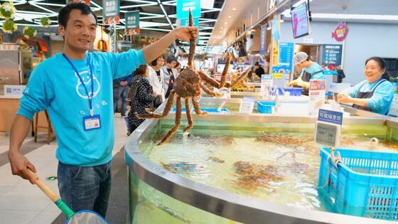 Теперь самое время пойти в супермаркет и выбрать морепродукты. Все, что вам понравиться вы отдадите на кассе сотруднику, который переместит их в конвейер. На данном этапе снова сканируется ваш QR-код. Это позволяет персоналу понять, что вы будете есть, а вам позволит получить уведомление о готовности ваших блюд.