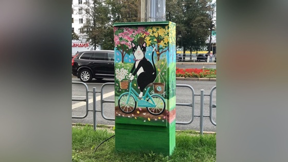 Челябинские урбанисты раскрасили очередную будку связи. На сером шкафу возле педуниверситета на проспекте Ленина, 69 появился кот на велосипеде на фоне цветущих деревьев. Рисунок сделали возле вуза на проспекте Ленина — Менеджером проекта стала Дарья Савенкова, рисовала Оля Поротикова, очищал и подготавливал ящик Евгений Климов. Этим проектом мы показываем, что в Челябинске много жителей, которым не всё равно, как выглядит их город, — рассказали активисты проекта «Челябинский урбанист». Урбанисты расписывают обшарпанные шкафы связи на средства, которые перечисляют неравнодушные люди На днях активисты сообщества «Челябинский урбанист» на будке связи рядом с конечной троллейбусов у ЮУрГУ нарисовали портрет изобретателя Николы Теслы. Он появился напротив другого ящика с изображением Илона Маска. Ранее художники преобразили серый шкаф на Сони Кривой. На рисунке влюблённые целуются на фоне чёрно-белой толпы. В августе они восстановили изображения птички, а также рабочего и колхозницы на перекрёстке улиц Красной и Труда, которые закрасили серой краской коммунальщики. До этого художники превратили в арт-объект серый шкаф на пересечении улиц Бейвеля и Скульптора Головницкого, нарисовав на нём бобров — символ челябинских дорожников.
