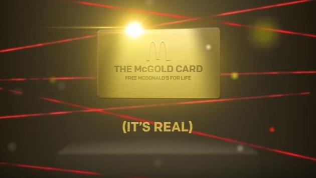 Макдоналдс объявил о старте конкурса, где главным призом станет McGold Card – золотая карта, дающая право на бессрочное бесплатное питание в заведениях сети Макдоналдс объявил о старте конкурса с призом McGold Card – золотой карты, дающей право на бессрочное бесплатное питание в заведениях сети. Для участия в акции достаточно зарегистрироваться в одноименном приложении в период с 10 по 24 августа. Победитель будет объявлен 29 августа. Помимо уникальной McGold Card, которая дает право на два бесплатных приема пищи в неделю в течение 50 лет, счастливчик получит 24-карантный позолоченный чехол для смартфона с гравировкой его имени. Акция распространяется только на рестораны в США. Макдоналдс впервые разыгрывает золотые карточки на безлимитное питание в ресторанах сети среди простых людей. Известно, что обладателями McGold Card являются актер Уоррен Баффет, который показал ее публике в 2007 году, основатель Microsoft Билл Гейтс и еще одна голливудская знаменитость актер Роб Лоу, отмечает USA Today. Фото: Youtube/McDonald’s
