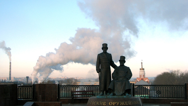 Со специализацией Ижевск определился быстро и навсегда – производство стрелкового оружия, уже в начале XIX века завод ежегодно клепал десятки тысяч стволов, а многоэтажный главный корпус с триумфальной колонной вместо шпиля строился как памятник победе над Наполеоном, вернее – вкладу завода в эту победу.