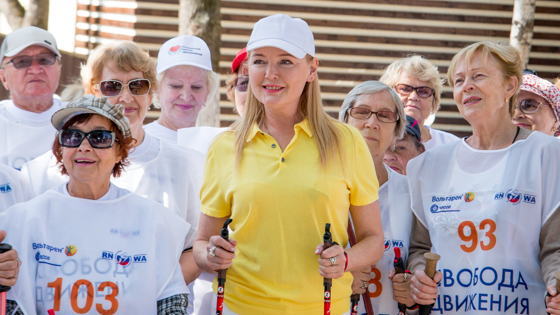 Тысячи участников прошли в этот по дорожкам парка «Швейцария», следуя за знаменитой телеведущей Ларисой Вербицкой, ставшей главным символом и лицом фестиваля. Открыл фестиваль телеведущий Никита Белоголовцев. После церемонии открытия и показа видеоролика, который представил историю этого проекта, на главной сцене «Свободы движения» прошёл мастер класс от профессионального тренера. А потом на сцену вышла Лариса Вербицкая, и рассказала свою историю любви к этому простому, но удивительно полезному виду спорта. Первыми на трассу вместе с телезвездой вышли поклонники скандинавской ходьбы в возрасте старше семидесяти лет! Весь день в парке деловито шагали со специальными палками для скандинавской ходьбы спортсмены всех возрастов, демонстрируя великолепную осанку и позитив единения. Фестиваль действительно стал настоящим праздником спорта для нижегородцев. Подробности о фестивале «Свобода движения» и интервью с Ларисой Вербицкой читайте в следующем номере «НП», а пока представляем вам фоторепортаж с места событий, снятый Дмитрием Гуськовым.
