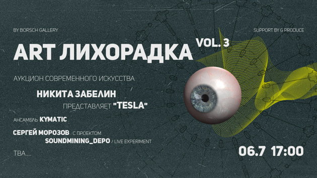Галерея современного искусства BORSCH Gallery при поддержке агентства G Produce проведет аукцион современного молодого искусства «ART лихорадка» в Культурном пространстве «Депо» 6 июля 2019 года. В рамках параллельной программы аукциона,музыкальный хэд лайнер Никита Забелин представит своё шоу Tesla, впервые после громкой апрельской премьеры.