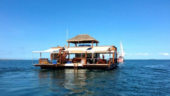 Этот потрясающий плавучий бар — одно из тех мест, которые обязательно нужно посетить во время поездки на Фиджи. Недавно открывшееся заведение под названием Cloud 9 («Облако №9») находится недалеко от главного острова архипелага и представляет собой двухуровневый плавучий лаунж-бар с рестораном, шезлонгами, удобными кушетками и подвесными креслами.