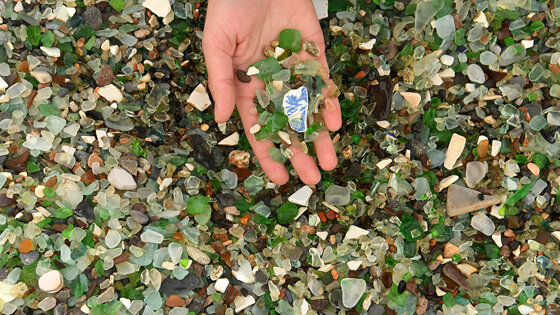 Поэтому «Пляж драгоценных камней» привлекает большое количество туристов со всего мира. Однако на месте люди обнаруживают, что эти камушки вовсе не драгоценности, а всего лишь разноцветное стекло. На самом деле Уссурийский залив раньше был свалкой. Все мы знаем, что русские очень любят выпить, и все использованные бутылки разных видов и форм еще со времен СССР отправлялись на свалку, находившуюся в этом заливе. Природа сделала свое дело: море отполировало осколки стекла и превратило их в округлые гладкие камушки. Никто не ожидал, что свалка, куда никто не мог ступить из-за большого количества мусора и разбитых бутылок, станет прекрасным пляжем. Однако сейчас стекла постепенно становится все меньше, по мнению экспертов, эти «драгоценные» камни полностью исчезнут через 20 лет. В чем же причина?