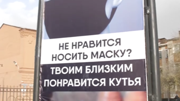 На баннерах, которые разместили на улицах, написано: «Не нравится носить маску? Твоим близким понравится кутья». О социальном дистанцировании напоминает слоган «Выбор за тобой», размещенный на фоне надгробий.