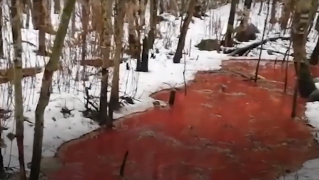 Жители Карелии обнаружили в поселке Попов Порог кровавую реку, сообщил телеканал "360".