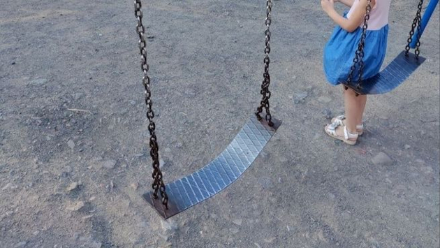 Жители Березовского Кемеровской области обнаружили в одном из дворов необычные детские качели. Вместо обычного сиденья здесь на цепях висит металлическая пластина.