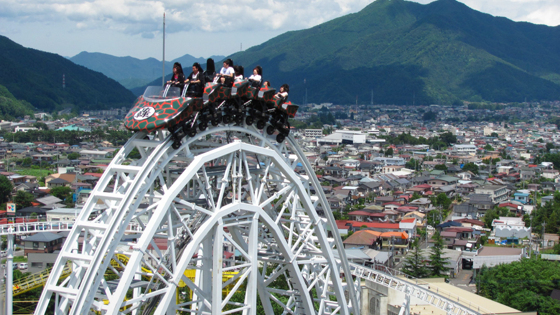 Оба аттракциона расположены в парке Fuji-Q Highland, раскинувшемся у священной для японцев горы Фудзияма. Здесь можно не только проверить свои нервы на прочность и испытать прилив адреналина, но и насладиться безумной красоты видами. На американских горках Dododonpa вы разгоняетесь до 180 км/час меньше, чем за две секунды, а мертвые петли диаметром почти 40 метров, располагающиеся на высоте 49 метров над землей, считаются самыми большими в мире. Еще одни американские горки Takabisha отличаются невероятным углом падения — 121 градус, и все это на скорости свыше 100 км/час.