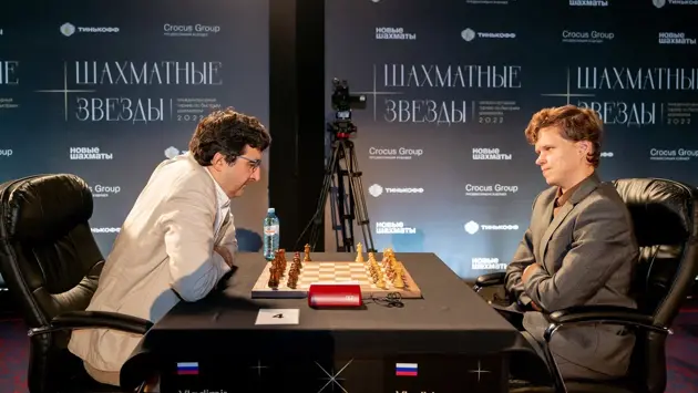 2 октября в ТРК VEGAS Крокус Сити прошел третий игровой день Международного турнира по быстрым шахматам «Шахматные звезды – 2022» с участием выдающихся гроссмейстеров и молодых спортсменов. Турнир с общим призовым фондом 14 250 000 ₽ проходит в Крокус Сити с 30 сентября по 5 октября. В турнире звезд по итогам третьего дня завершилась первая часть – рапид. На финише лидер турнира первых двух дней Раунак Садвани сбавил темп, пропустив вперед Владислава Артемьева. Победитель набрал 6,5 очков из 9, опередив на одно очко Теймура Раджабова, Раунака Садвани и Владимира Крамника, которые заняли 2-4 места соответственно. «Все игроки турнира – гроссмейстеры экстра-класса, с которыми интересно соревноваться, я очень рад возможности сыграть с легендарным Владимиром Крамником. Организаторам удалось создать отличную атмосферу, а шахматистам — оставить любые разногласия за пределами турнира и уделить все свое внимание шахматам, поэтому соревнования проходят на высшем уровне», – отметил шестнадцатилетний индийский шахматист Раунак Садвани. К концу третьего игрового дня на пятом месте оказался Сергей Карякин, набравший 5 очков, за ним — Франсиско Вальехо с 4,5 очками и Эрнесто Инаркиев (4 очка). У Александры Горячкиной и Екатерины Лагно по 3 очка, у Александра Морозевича – 2,5 очка. «Благодаря подобным турнирам становится понятно, что шахматисты сегодня — это звезды большого спорта. Шахматные соревнования – не менее интересные и зрелищные, чем какие-либо другие: они пользуются огромным вниманием болельщиков и медиа. Стало известно, что организаторы планируют проводить серию таких турниров не только в России, но и в других странах, и это отличная новость для всех профессионалов и любителей шахматного спорта», – отметил один из сильнейших шахматистов мира Теймур Раджабов. В детском турнире в группе до 9 лет на финише все три лидера турнира проиграли: вперед вырвались Николай Шевяков и Кирилл Желонкин. По дополнительным параметрам первое место досталось Шевякову. На пол-очка отстали сразу пятеро: по дополнительным показателям бронзу завоевал Лука Тыртышников. Среди девочек до 9 лет первое место поделили Суворова София и Ульяна Демина.