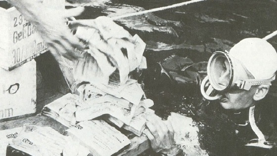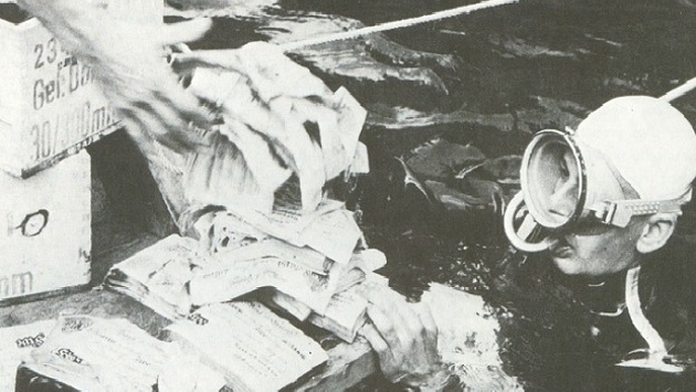 Об этом стало известно после того, как австрийские рыбаки стали приносить в банк английские купюры для обмена, а они оказались подделкой. Началось расследование, которое показало, что фальшивые деньги всплывали со дна австрийского озера.