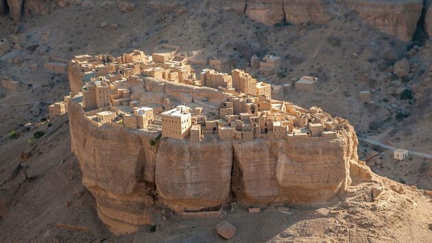 В пустынном Йемене, на скале высотой более 100 метров, расположились около 45 домов из сырцового кирпича с видом на бескрайнюю и необитаемую долину Вади Даван. Город-деревня Хайд Аль-Джазиль круглосуточно окружена песчаными просторами и редкими порывами ветра. И только высокие скалы в определенные часы суток служат спасением для местных обитателей, которые не могут скрыться от солнечных лучей по собственному желанию.