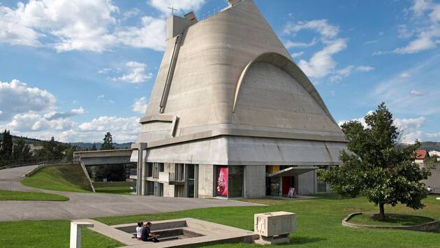 Еще одно религиозное сооружение Ле Корбюзье спроектировал для коммуны Фирмини во Франции — церковь Сен-Пьер, которую начали строить в 1973 году уже после смерти архитектора. Через пять лет работы остановили и возобновили только в 2004-м. Еще через два года храм открылся для посетителей. Как и в большинстве своих проектов, Ле Корбюзье отошел от вековых традиций и придумал церковь в форме пирамиды, переходящей на вершине в усеченный конус. Свод достигает в высоту 33 метра. Свет попадет внутрь через небольшие отверстия, создавая особую приглушенную атмосферу.