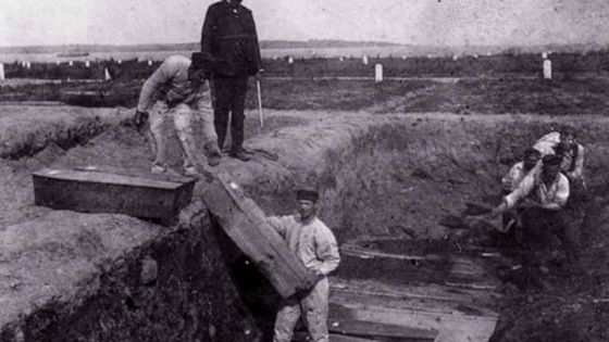 Несколько лет назад в интернете появились кадры, снятые Би-би-си, на которых можно увидеть людей в химических костюмах, кладущих гробы друг на друга в свежевырытую траншею, а затем засыпающих их землей. Пояснение к видео гласило, что съемка произведена на острове Харт, где находится кладбище для "невостребованных" - для неопознанных трупов и тех, чьи родственники не могут похоронить их должным образом. Костюмы химзащиты использовались из-за смертельной опасности COVID-19.