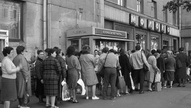 Подавляющей части населения России пришлось максимально ужать свои расходы. Так, в 1992 году потребление мяса сократилось на 80%, молока — на 56%, овощей — на 84%, рыбы — на 56% от уровня и без того скудного 1991 года. К лету 1998 года ситуация немного выправилась, однако продолжала оставаться удручающей.