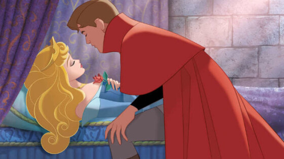 В диснеевской версии принцесса прокалывает палец веретеном и погружается в вечный сон. Храбрый принц будит ее поцелуем, и они живут долго и счастливо.