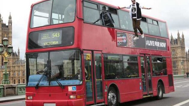 3. Британский иллюзионист Стивен Фрейн поразил лондонцев в 2013 году: молодой человек ехал, расположившись вертикально в воздухе и держась правой рукой за автобус. Со стороны казалось, что он левитирует. Позднее тайну левитации раскрыли: тело Стивена удерживала вертикально металлическая конструкция, а рука была надёжно зафиксировано.